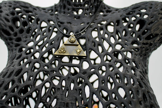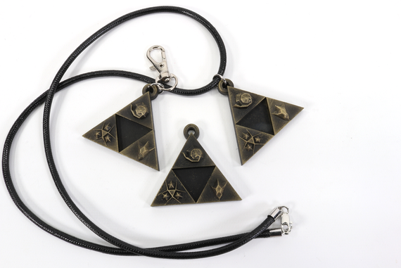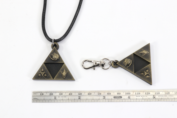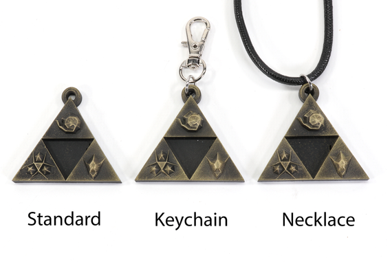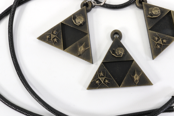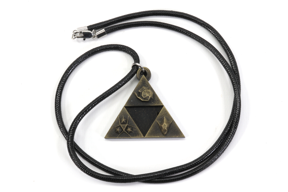 The Triforce and Spiritual stones' power combined is the only thing that can aid the Hero of Time in defeating evil. Now you can wear them with you to ward off evil! Cold cast aluminum aged and buffed to perfection, the pendant catches light beautifully.