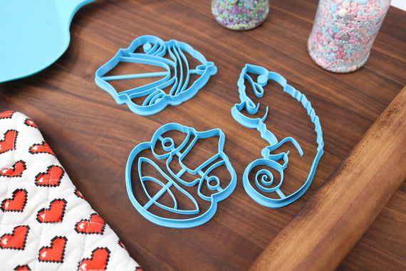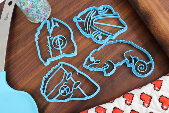 Chameleon Cookie Cutters - Tropical Lizard Baking - Chameleon Face, Chameleon Outline, Cute Chameleon