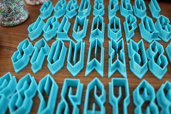These fonts will be produced mirrored, so that when cutting the cookies normally, the letters will be the right way around. This set photographed was made special to show off the font in a readable way.