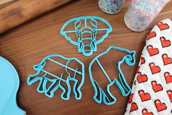 Elegant Elephants Cookie Cutters - Cute Elephant, Elephant Face, Elephant Outline, Running Elephant, Teacup Elephant