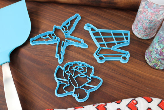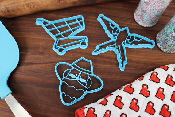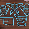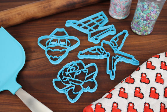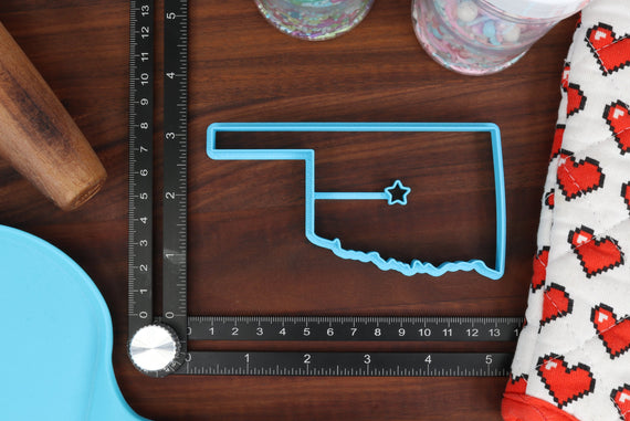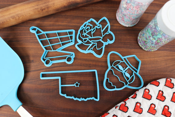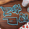Oklahoma Cookie Cutters - Oklahoma State Outline, Cowboy with Bandana, Rose Cutter, Scissor-Tailed Flycatcher, Shopping Cart