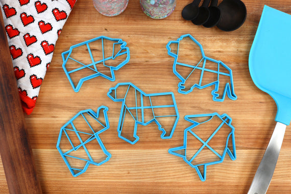 Origami Cookie Cutters Animals Set 2 - Origami Elephant, Origami Gorilla, Origami Lion, Origami Pig, Origami Turtle