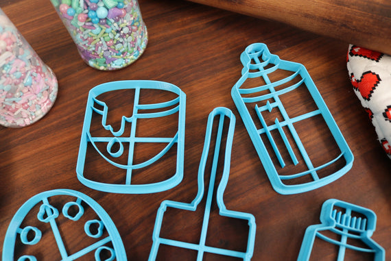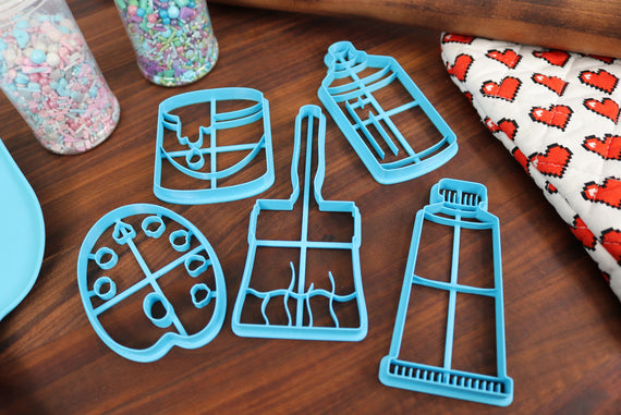 Painter's Tools Cookie Cutters - Paint Brush, Paint Bucket, French Palette, Paint Tube, Spray Paint