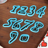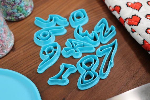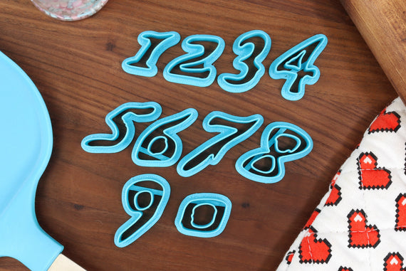 These fonts will be produced mirrored, so that when cutting the cookies normally, the letters will be the right way around. This set photographed was made special to show off the font in a readable way.