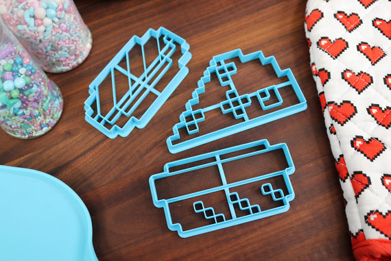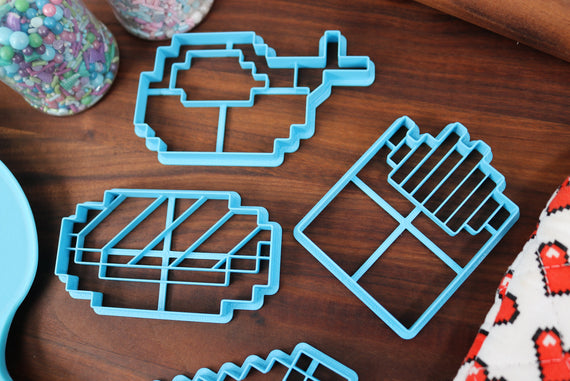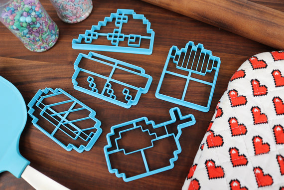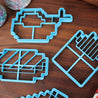 Pixel Foods Cookie Cutters - Pixel Chicken Wing, Pixel Fries, Pixel Hotdog, Pixel Patty, Pixel Pizza - Pixelated Food Merch