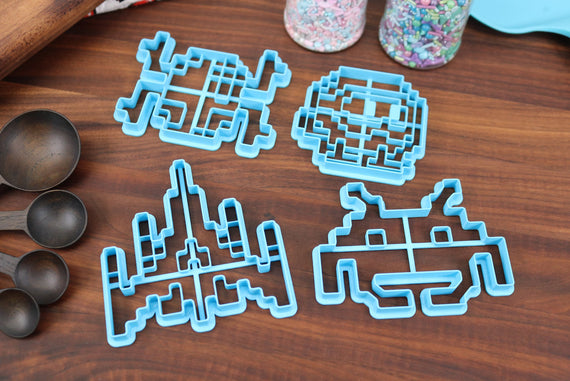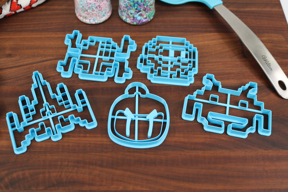 Retro Games Cookie Cutters - Bomb Guy, Froggy, Galaxy Ship, Invader, Pooka