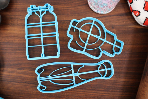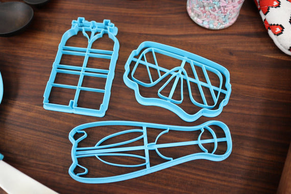 Scuba Diving Cookie Cutters, Set 1 - Depth Gauge, Scuba Fins, Scuba Goggles, Scuba Respirator, Scuba Tank