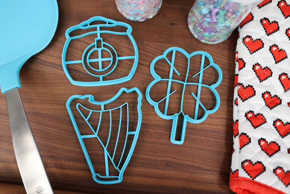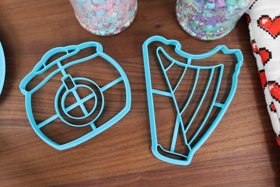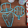 St. Patrick's Day Cookie Cutters - Harp Instrument, Irish Flag, Leprechaun Hat, Lucky Clover, Pot of Gold