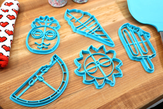 Summer Fun Cookie Cutters - Ice Cream, Pineapple, Popsicle, Sunglasses Sun, Watermelon