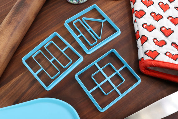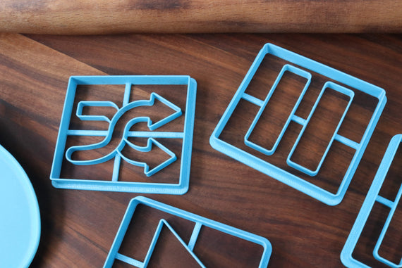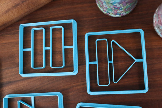 Technology Symbols Cookie Cutters, Set 2 - Eject Button, Pause Button, Play Button, Shuffle Button, Stop Button