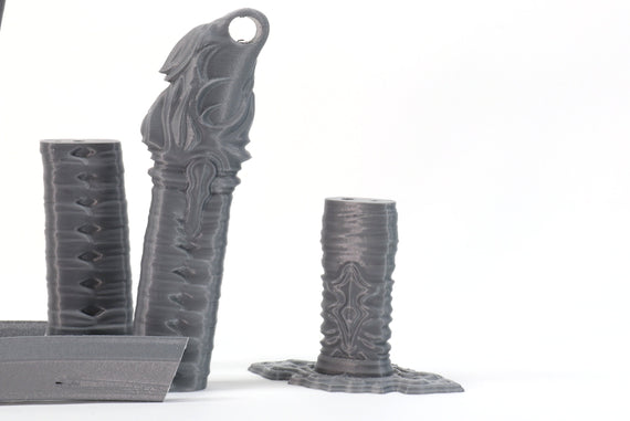 Please be aware the assembled prop pictures shown involved some finishing and support removal. Color of plastic will vary based on availability.