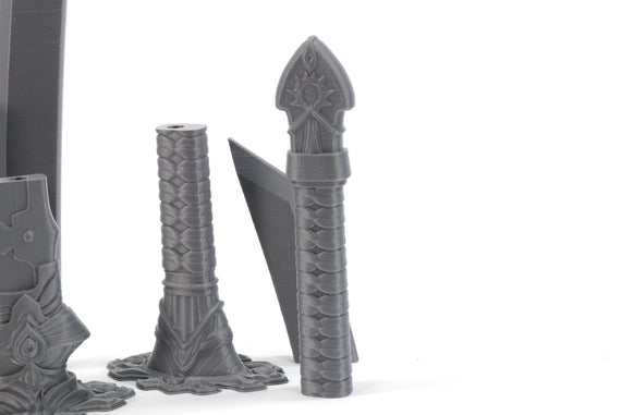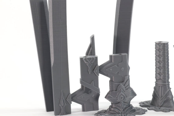 Please be aware the assembled prop pictures shown involved some finishing and support removal. Color of plastic will vary based on availability.