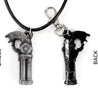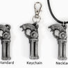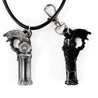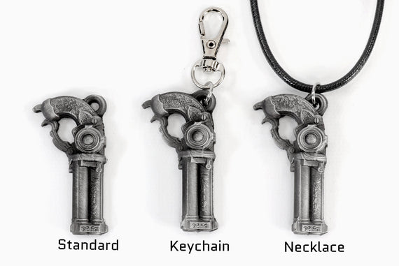 Each of our keychains and necklaces are hand crafted with quality and care as our main priority. They start out as hand sculpted models that are then molded and cast with a special crystal resin and metal powder mix. This cast is then cleaned and aged using a method that brings out the design out to a shiny finish and leaves the piece with an antiqued feel. Each one is cleaned and secured to a hypoallergenic necklace or key chain using super strong adhesive, leaving the finish piece lightweight and durable!