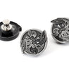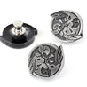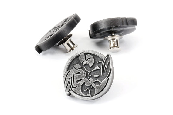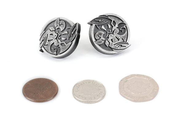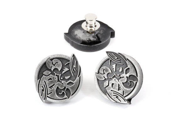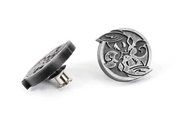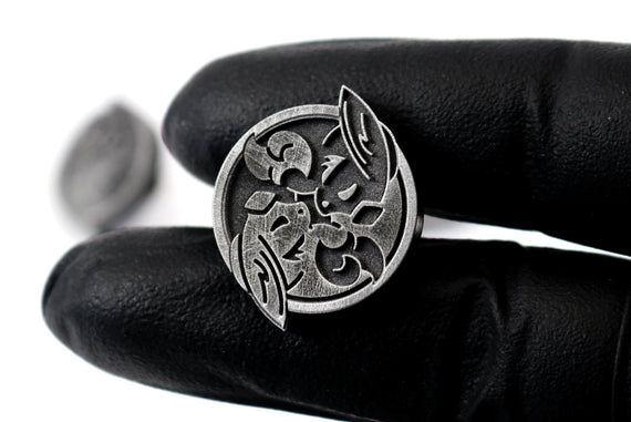 Each of our collectible pins is hand crafted with quality and care as our main priority. They start out as hand sculpted models that are then molded and cast with a special crystal resin and metal powder mix. This cast is then cleaned and aged using a method that brings out the design out to a shiny finish and leaves the piece with an antiqued feel. Each one is cleaned and secured to hypoallergenic pin using super strong adhesive, leaving the finish piece lightweight and durable!