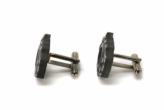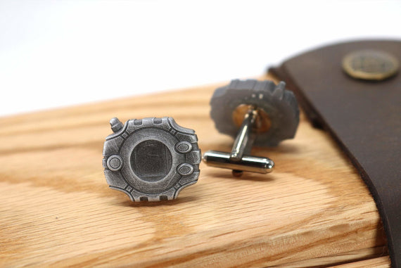 Each of our cufflinks are hand crafted with quality and care as our main priority. They start out as hand sculpted models that are then molded and cast with a special crystal resin and metal powder mix. This cast is then cleaned and aged using a method that brings out the design out to a shiny finish and leaves the piece with an antiqued feel.