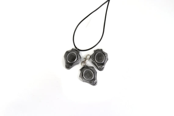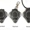 Each of our keychains are hand crafted with quality and care as our main priority. They start out as hand sculpted models that are then molded and cast with a special crystal resin and metal powder mix. This cast is then cleaned and aged using a method that brings out the design out to a shiny finish and leaves the piece with an antiqued feel. Each one is cleaned and secured to a hypoallergenic necklace or key chain using super strong adhesive, leaving the finish piece lightweight and durable!