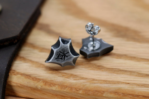 Dark Knight Job Icon Stainless Steel Studded Earrings Pair - FFXIV