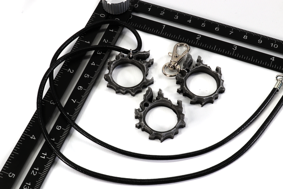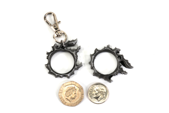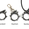 Each of our keychains and necklaces are hand crafted with quality and care as our main priority. They start out as hand sculpted models that are then molded and cast with a special crystal resin and metal powder mix. This cast is then cleaned and aged using a method that brings out the design out to a shiny finish and leaves the piece with an antiqued feel. Each one is cleaned and secured to a hypoallergenic necklace or key chain using super strong adhesive, leaving the finish piece lightweight and durable!