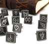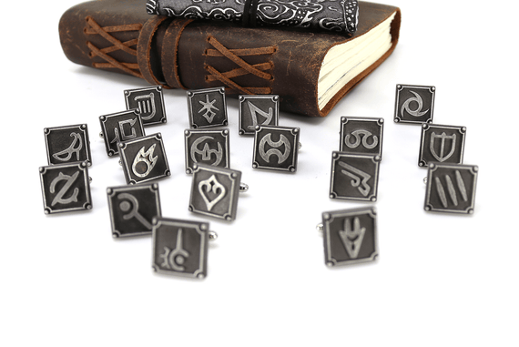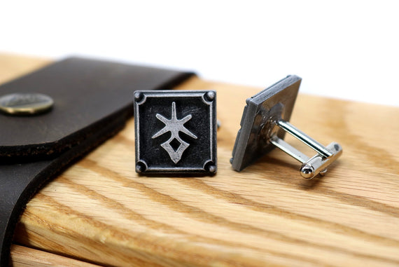 Each of our cufflinks is hand crafted with quality and care as our main priority. They start out as hand sculpted models then molded and cast with a special crystal resin and metal powder mix. This cast is then cleaned and aged using a method that brings out the design out to a shiny finish and leaves the piece with an antiqued feel. Each one is cleaned and secured to hypoallergenic stainless steel cufflinks using super strong adhesive, leaving the finished piece lightweight and durable!