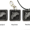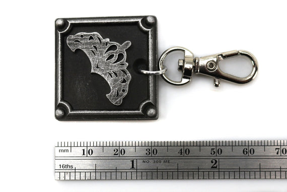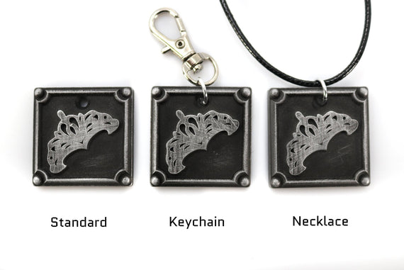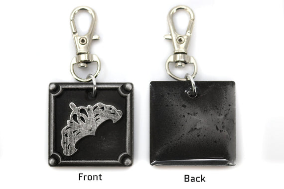 Each of our keychains are hand crafted with quality and care as our main priority. They start out as hand sculpted models that are then molded and cast with a special crystal resin and metal powder mix. This cast is then cleaned and aged using a method that brings out the design out to a shiny finish and leaves the piece with an antiqued feel. Each one is cleaned and secured to a hypoallergenic necklace or key chain using super strong adhesive, leaving the finish piece lightweight and durable!