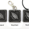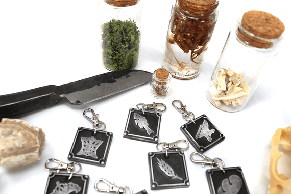 Each of our keychains are hand crafted with quality and care as our main priority. They start out as hand sculpted models that are then molded and cast with a special crystal resin and metal powder mix. This cast is then cleaned and aged using a method that brings out the design out to a shiny finish and leaves the piece with an antiqued feel. Each one is cleaned and secured to a hypoallergenic necklace or key chain using super strong adhesive, leaving the finish piece lightweight and durable!