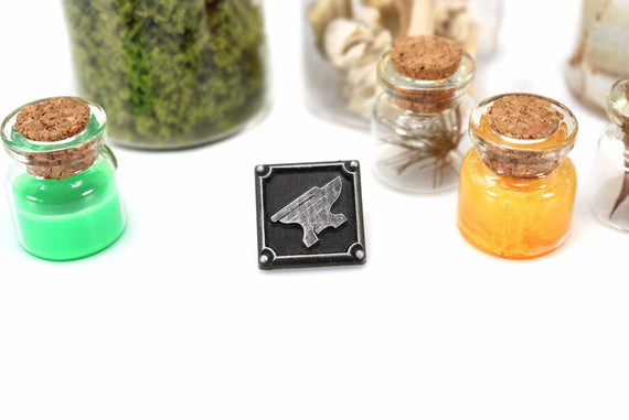 Each of our collectible pins is hand crafted with quality and care as our main priority. They start out as hand sculpted models that are then molded and cast with a special crystal resin and metal powder mix. This cast is then cleaned and aged using a method that brings out the design out to a shiny finish and leaves the piece with an antiqued feel. Each one is cleaned and secured to hypoallergenic pin using super strong adhesive, leaving the finish piece lightweight and durable!