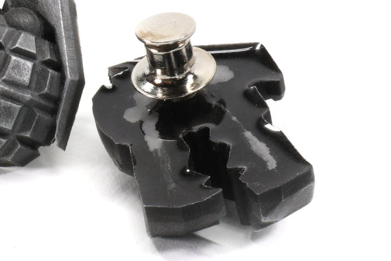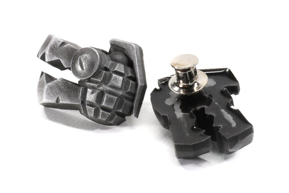 Each of our collectible pins is hand crafted with quality and care as our main priority. They start out as hand sculpted models that are then molded and cast with a special crystal resin and metal powder mix. This cast is then cleaned and aged using a method that brings out the design out to a shiny finish and leaves the piece with an antiqued feel. Each one is cleaned and secured to hypoallergenic pin using super strong adhesive, leaving the finish piece lightweight and durable!