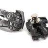 She doesn't think once about blowing stuff up! Jinx is here to mess up your day with style, and there is nothing she loves more! Whether she is gunning down minions or launching rockets at innocent civilians, Jinx enjoys causing mayhem. Share Jinx's passion for destruction and keep your very own flamechompers as a beautiful aged aluminum keychain or necklace.