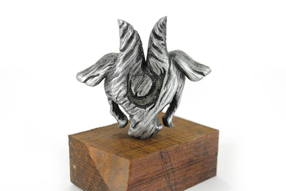 The Kindred, League of Legends own Grim Reaper, takes the form of a cuddly lamb, and a terrifying wolf. The duo are inseparable as they roam the battlefields, searching for wayward souls while wearing their matching masks. Cold cast aluminum aged and buffed to perfection, our masks catch the light beautifully like the way Kindred catches their prey.