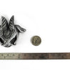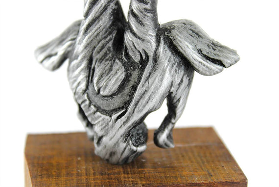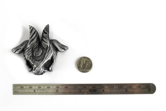 Each of our pieces is hand crafted with quality and care as our main priority. They start out as hand sculpted models that are then molded and cast with a special crystal resin and metal powder mix. This cast is then cleaned and aged using a method that brings out the design out to a shiny finish and leaves the piece with an antiqued feel. Each one is cleaned and secured to a hypoallergenic necklace or key chain using super strong adhesive, leaving the finish piece lightweight and durable!