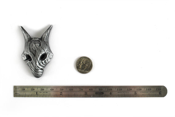 The Kindred, League of Legends own Grim Reaper, takes the form of a cuddly lamb, and a terrifying wolf. The duo are inseparable as they roam the battlefields, searching for wayward souls while wearing their matching masks. Cold cast aluminum aged and buffed to perfection, our masks catch the light beautifully like the way Kindred catches their prey.