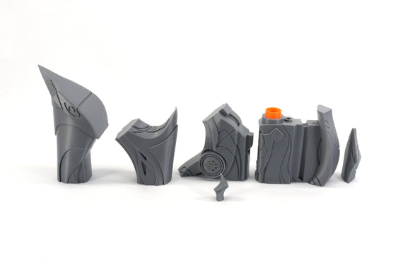 Please be aware the assembled prop pictures shown involved some finishing and support removal. Color of plastic will vary based on availability.