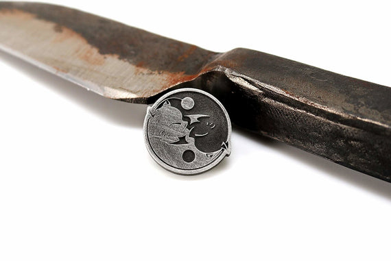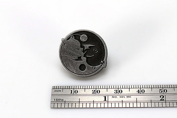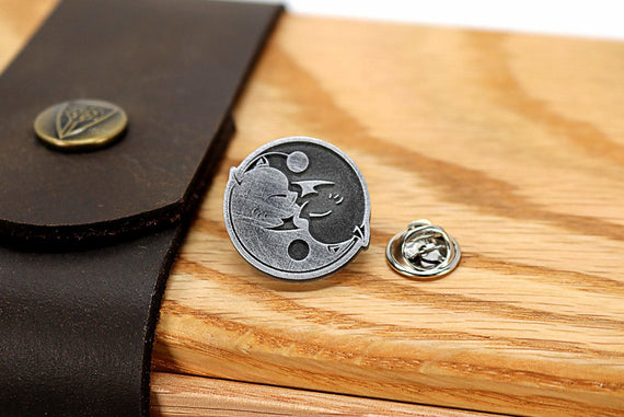 Each of our collectible pins is hand crafted with quality and care as our main priority. They start out as hand sculpted models that are then molded and cast with a special crystal resin and metal powder mix. This cast is then cleaned and aged using a method that brings out the design out to a shiny finish and leaves the piece with an antiqued feel. Each one is cleaned and secured to hypoallergenic pin using super strong adhesive, leaving the finish piece lightweight and durable!