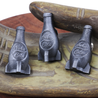 Each of our pieces is hand crafted with quality and care as our main priority. They start out as hand sculpted models that are then molded and cast with a special crystal resin and metal powder mix. This cast is then cleaned and aged using a method that brings out the design out to a shiny finish and leaves the piece with an antiqued feel. Each one is cleaned and secured to a hypoallergenic pin using super strong adhesive, leaving the finished piece lightweight and durable!