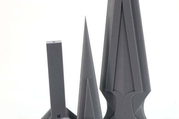 Please be aware the assembled prop pictures shown involved some finishing and support removal. Color of plastic will vary based on availability.