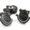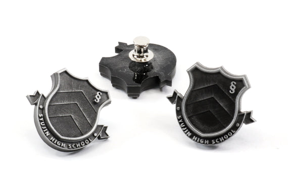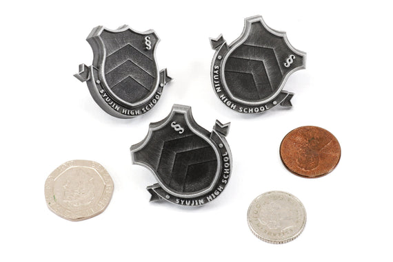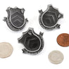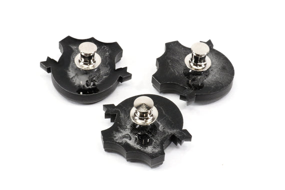 Each of our pieces is hand crafted with quality and care as our main priority. They start out as hand sculpted models that are then molded and cast with a special crystal resin and metal powder mix. This cast is then cleaned and aged using a method that brings out the design out to a shiny finish and leaves the piece with an antiqued feel. Each one is cleaned and secured to a hypoallergenic pin using super strong adhesive, leaving the finish piece lightweight and durable!