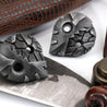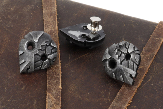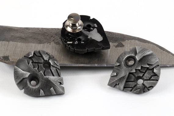 Each of our collectible pins is hand crafted with quality and care as our main priority. They start out as hand sculpted models that are then molded and cast with a special crystal resin and metal powder mix. This cast is then cleaned and aged using a method that brings out the design out to a shiny finish and leaves the piece with an antiqued feel. Each one is cleaned and secured to hypoallergenic pin using super strong adhesive, leaving the finish piece lightweight and durable!
