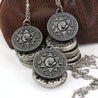 Each of our charm necklaces is hand crafted with quality and care as our main priority. They start out as hand sculpted models that are then molded and cast with a special crystal resin and metal powder mix. This cast is then cleaned and aged using a method that brings out the design out to a shiny finish and leaves the piece with an antiqued feel. Each one is cleaned and secured to hypoallergenic stainless steel necklace using super strong adhesive, leaving the finish piece lightweight and durable!