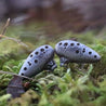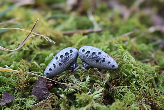 Each of our earrings is hand crafted with quality and care as our main priority. They start out as hand sculpted models that are then molded and cast with a special crystal resin and metal powder mix. This cast is then cleaned and aged using a method that brings out the design out to a shiny finish and leaves the piece with an antiqued feel. Each one is cleaned and secured to hypoallergenic stainless steel studs using super strong adhesive, leaving the finish piece lightweight and durable!