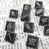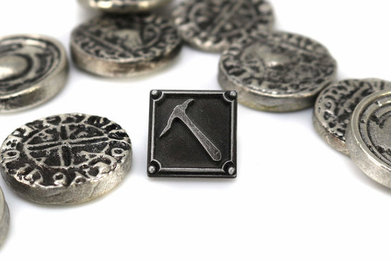 Each of our collectible pins is hand crafted with quality and care as our main priority. They start out as hand sculpted models that are then molded and cast with a special crystal resin and metal powder mix. This cast is then cleaned and aged using a method that brings out the design out to a shiny finish and leaves the piece with an antiqued feel. Each one is cleaned and secured to hypoallergenic pin using super strong adhesive, leaving the finish piece lightweight and durable!