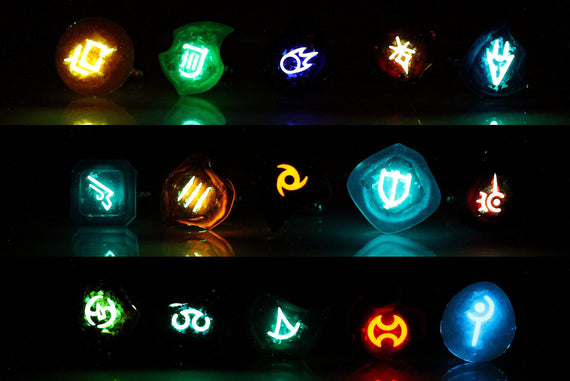 Each soul stone is handmade with high quality crystal resin and hand polished for a nice shine. When fully charged, each soul stone emits a beautiful and bright Aetherial glow from its center emblem, making it uniquely stunning.