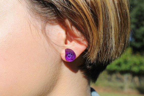 Each of our earrings is hand crafted with quality and care as our main priority. They start out as hand sculpted models that are then molded and cast with a special crystal resin. Each one is cleaned and secured to hypoallergenic stainless steel studs using super strong adhesive, leaving the finish piece lightweight and durable!