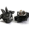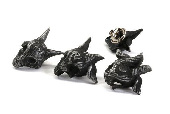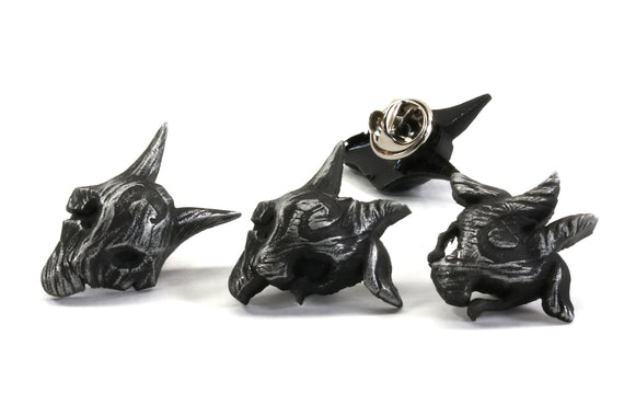 Each of our collectible pins is hand crafted with quality and care as our main priority. They start out as hand sculpted models that are then molded and cast with a special crystal resin and metal powder mix. This cast is then cleaned and aged using a method that brings out the design out to a shiny finish and leaves the piece with an antiqued feel. Each one is cleaned and secured to hypoallergenic pin using super strong adhesive, leaving the finish piece lightweight and durable!