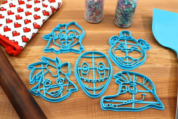 FNAF Security Breach Cookie Cutters - Glamrock Chica, Glamrock Freddy, Montgomery Gator, Nightmarionne Bot, Roxanne Wolf