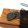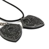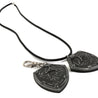 Each of our pieces is hand crafted with quality and care as our main priority. They start out as hand sculpted models that are then molded and cast with a special crystal resin and metal powder mix. This cast is then cleaned and aged using a method that brings out the design out to a shiny finish and leaves the piece with an antiqued feel. Each one is cleaned and secured to a hypoallergenic necklace or key chain using super strong adhesive, leaving the finish piece lightweight and durable!