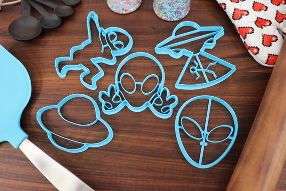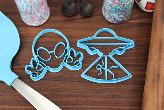 Cute Aliens Cookie Cutters, Set 1 - UFO Cookie Cutter, Alien Abduction, The Greys, Grey Alien Face, I Want to Believe