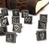 Each of our cufflinks is hand crafted with quality and care as our main priority. They start out as hand sculpted models then molded and cast with a special crystal resin and metal powder mix. This cast is then cleaned and aged using a method that brings out the design out to a shiny finish and leaves the piece with an antiqued feel. Each one is cleaned and secured to hypoallergenic stainless steel cufflinks using super strong adhesive, leaving the finished piece lightweight and durable!