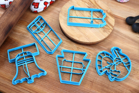 Pennsylvania Cookie Cutters - Pennsylvania Outline, Chocolate Bar, Liberty Bell, Ruffed Grouse