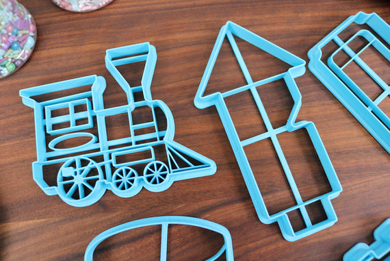 Train Cookie Cutters Set One - Conductor's Hat, Railway Track, Steam Engine, Train Ticket, Train Whistle